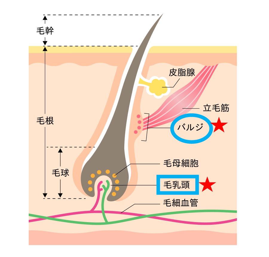 脱毛を理解するうえで重要なのが、毛の再生に関わる組織です。
