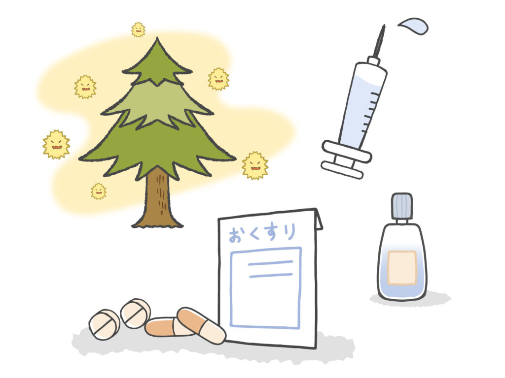 治療法には抗ヒスタミン薬(抗アレルギー薬)の内服や、点眼薬、点鼻薬があります。