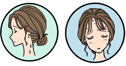 緊張したとき、食事のとき、外出中などに、髪やお化粧が崩れるほど汗が流れ落ちてしまうこともあります。